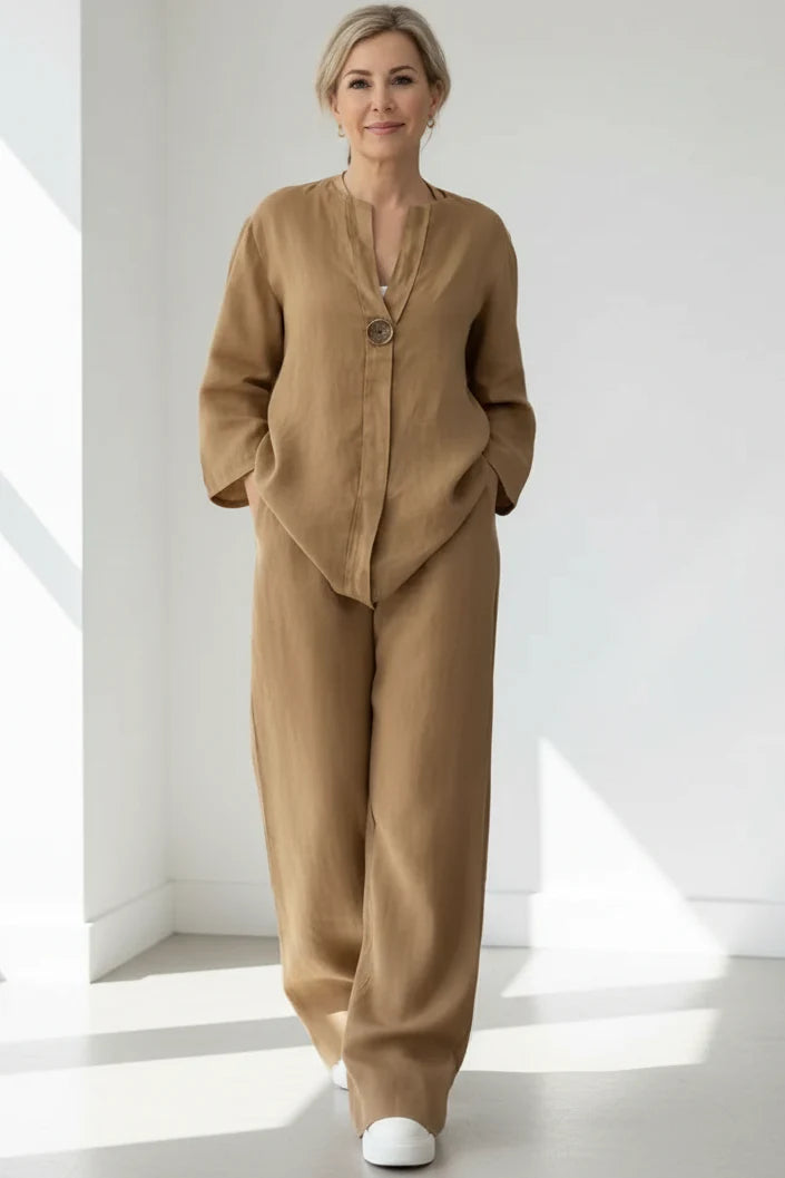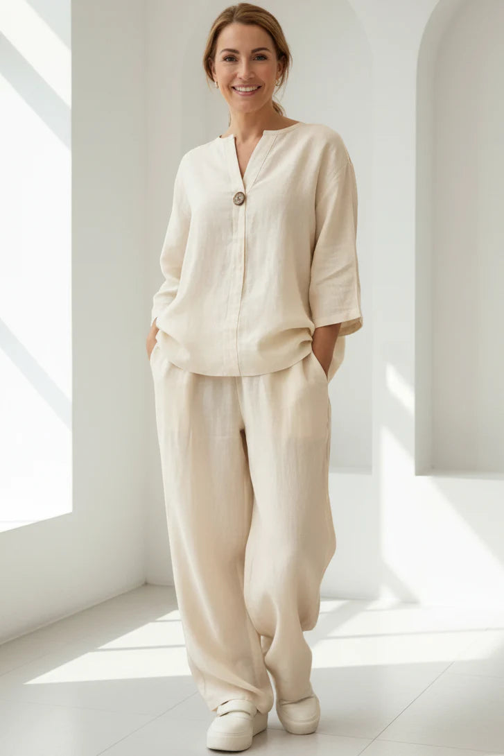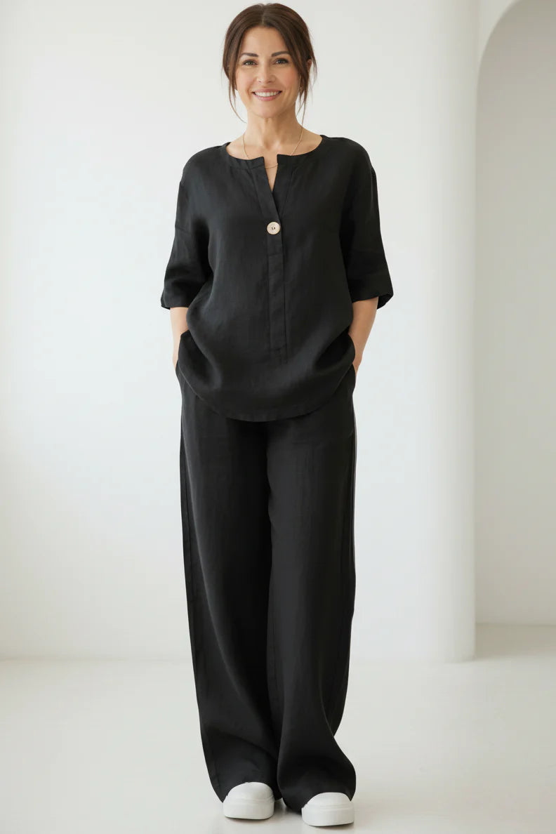 This beautifully designed set captures the art of relaxed sophistication. Every detail is created to make you feel confident, graceful, and free — from its fluid drape to the flattering, easy silhouette. It’s the kind of outfit that makes every day feel a little more luxurious, without ever trying too hard.